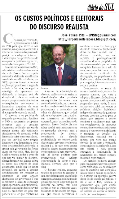 Coelho repetir resultados eleitorais semelhantes aos de Manuela Ferreira Leite,